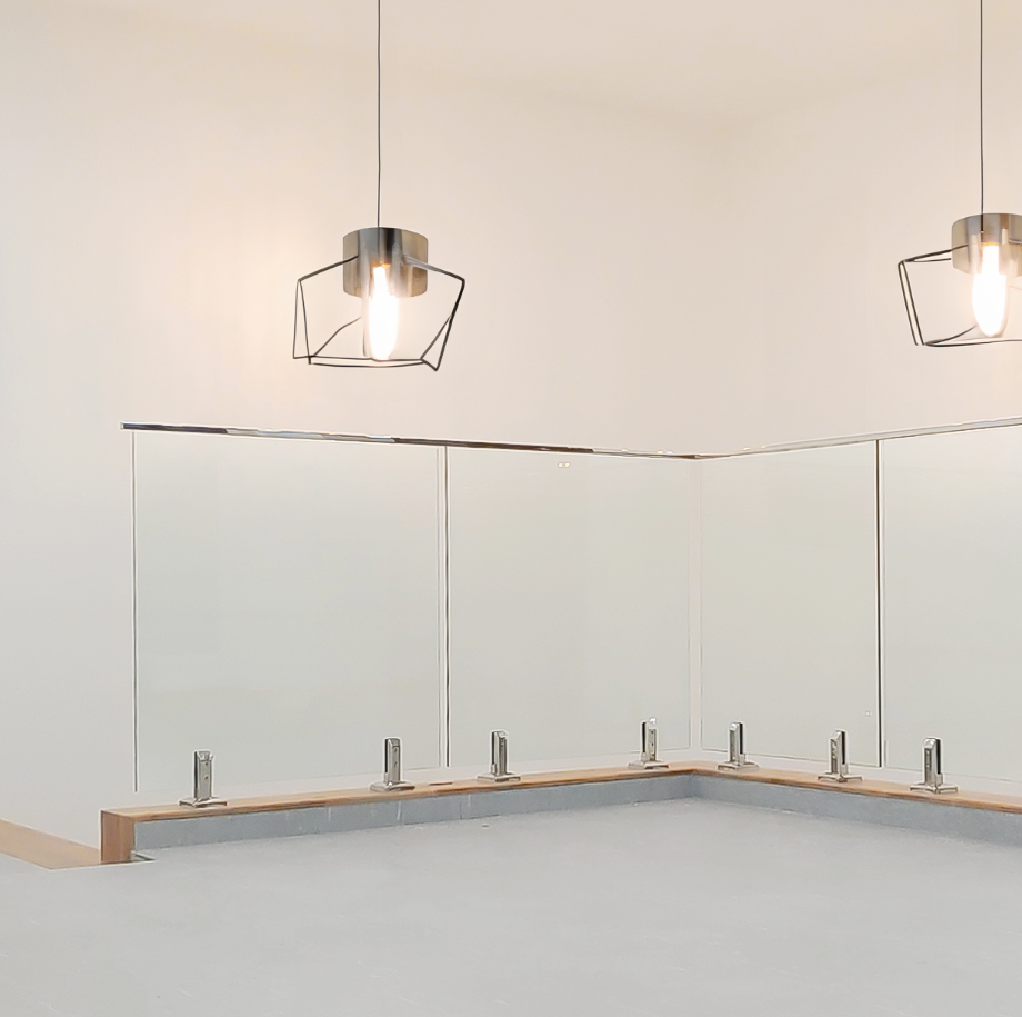 유리난간의 유리판을 고정하는 난간대가 로켓형으로 되어있는 제품입니다.비산방지필름이나 거울필름 등의 시공 방식도 선택할 수 있습니다.